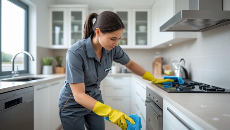 Bulaşıklar yıkanır. Ocak, davlumbaz, tezgâh, lavabo ve mutfak dolaplarının dış yüzeyleri yağ çözücü ve dezenfektanlarla temizlenir.